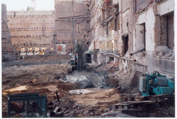 Entkernung eines Gebäudes mit Aussteifung der Außenfassade