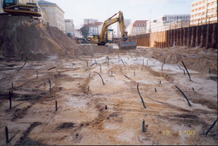 Erstellen eines wassersperrenden Troges mittels eingepreßten Spundbohlen und auftriebssicherer Weichgelsohle