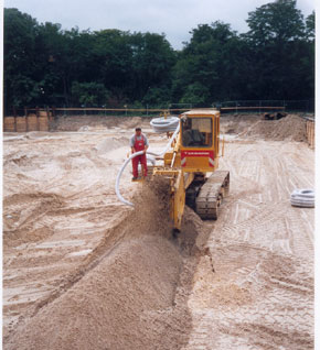 Einfräsen einer Tiefendränage zur großflächigen Grundwasserabsenkung